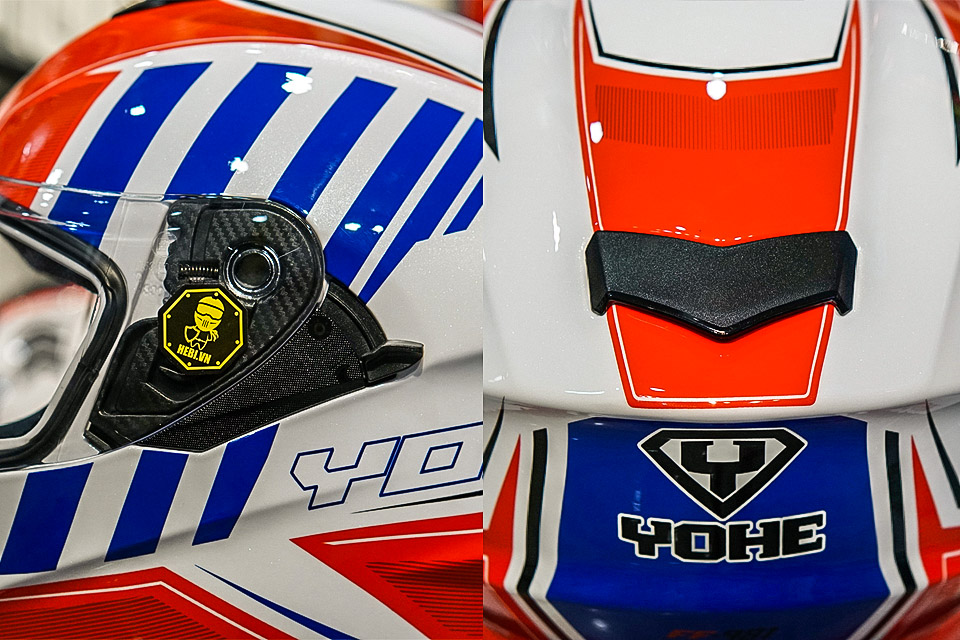 Bên cạnh đó, dòng Yohe 981 có sự thay đổi về thiết kế khe gió ở trên đỉnh đầu, từ hai khe ở hai bên trên như Yohe 978 lại vuốt thành một khe giúp người dùng đóng cửa dễ dàng khi lái moto. Sở hữu chiếc mũ Yohe 981 này, anh em biker có thể tùy ý lựa chọn phong cách khác nhau đi dạo phố, đi làm hoặc lên những chuyến đi xa mà vẫn giữ được tính thời trang.